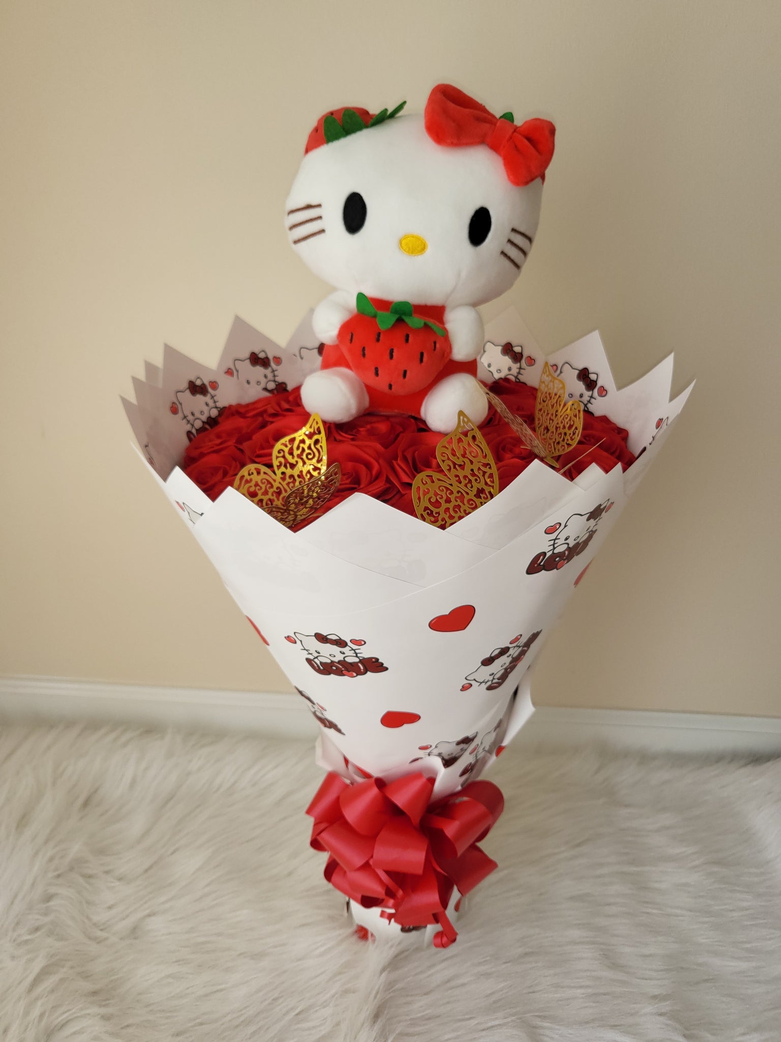 Ramo 24 rosas eternas y un peluche hello kitty